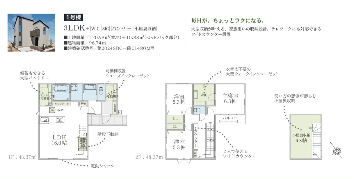 | 建築確認番号 | 1号棟:第2024SBCー確01480M号 | 現況 | 完成済 |